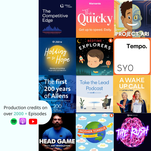 We are based in Sydney however we work with an amazing network of studios around Australia and can produce your podcast from anywhere. We’ve worked on plenty of podcasts on the other side of the world (hello to our friends in Zurich!) and even did a record at 38,000 feet – but that’s a story for another day.